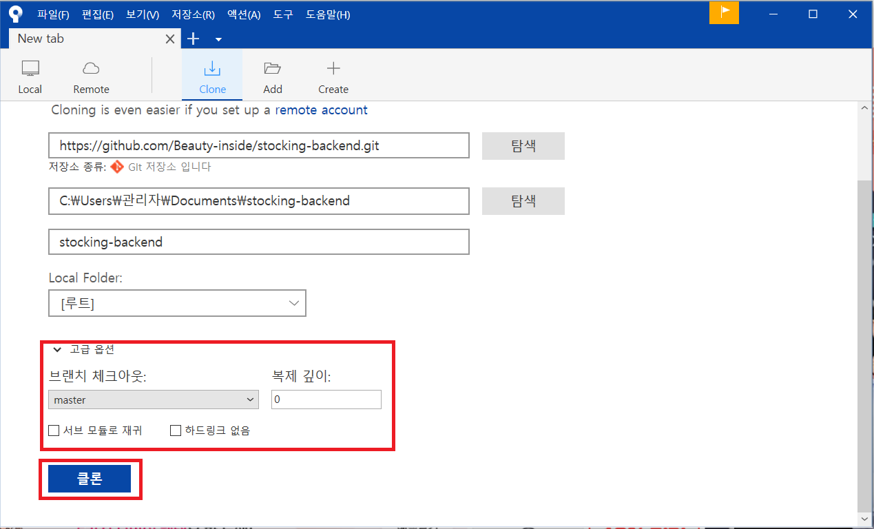 로컬 저장소에서 작업용 레퍼지토리 추가
