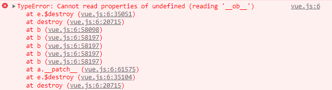 프로젝트 당시 페이지를 이동하면 이전 페이지의 Vue를 destroy하는 과정에서 다음과 같은 에러가 발생했다.