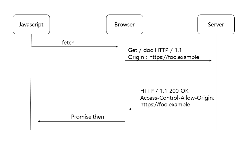 - 브라우저는 서버의 응답 헤더 정책(응답 헤더 중 Access-Control-Allow-Origin)과 비교하여 요청이 안전하다고 판단되면 본 요청을 보낸다.