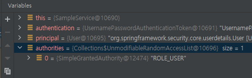 - authentication.getAuthorities() : 사용자의 권한들을 반환. 이때 복수형인 이유는 여러개의 권한을 가질 수 있기 때문(유저이면서 동시에 관리자인 경우)