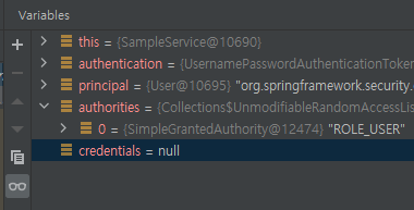 - authentication.getCredentials() : 인증한 다음에는 가지고 있을 필요가 없어서 null 값이 반환된다.